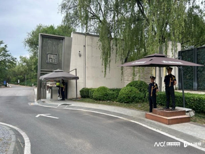君山小区大门口,两个物业公司的保安同时在此站岗。
